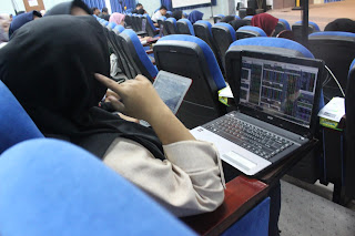 MALANG – Puluhan anak muda Selasa (30/4/2019) siang itu di Home Theater, Fakultas Humaniora UIN Maliki Malang terlihat menghadap laptop. Mereka memperhatikan pergerakan saham yang ditampilkan oleh aplikasi IPOT. Ada yang sedang mengamati pola chart dan perubahan harga saham. Tak sedikit juga yang sedang termenung dan menyimak pemateri.